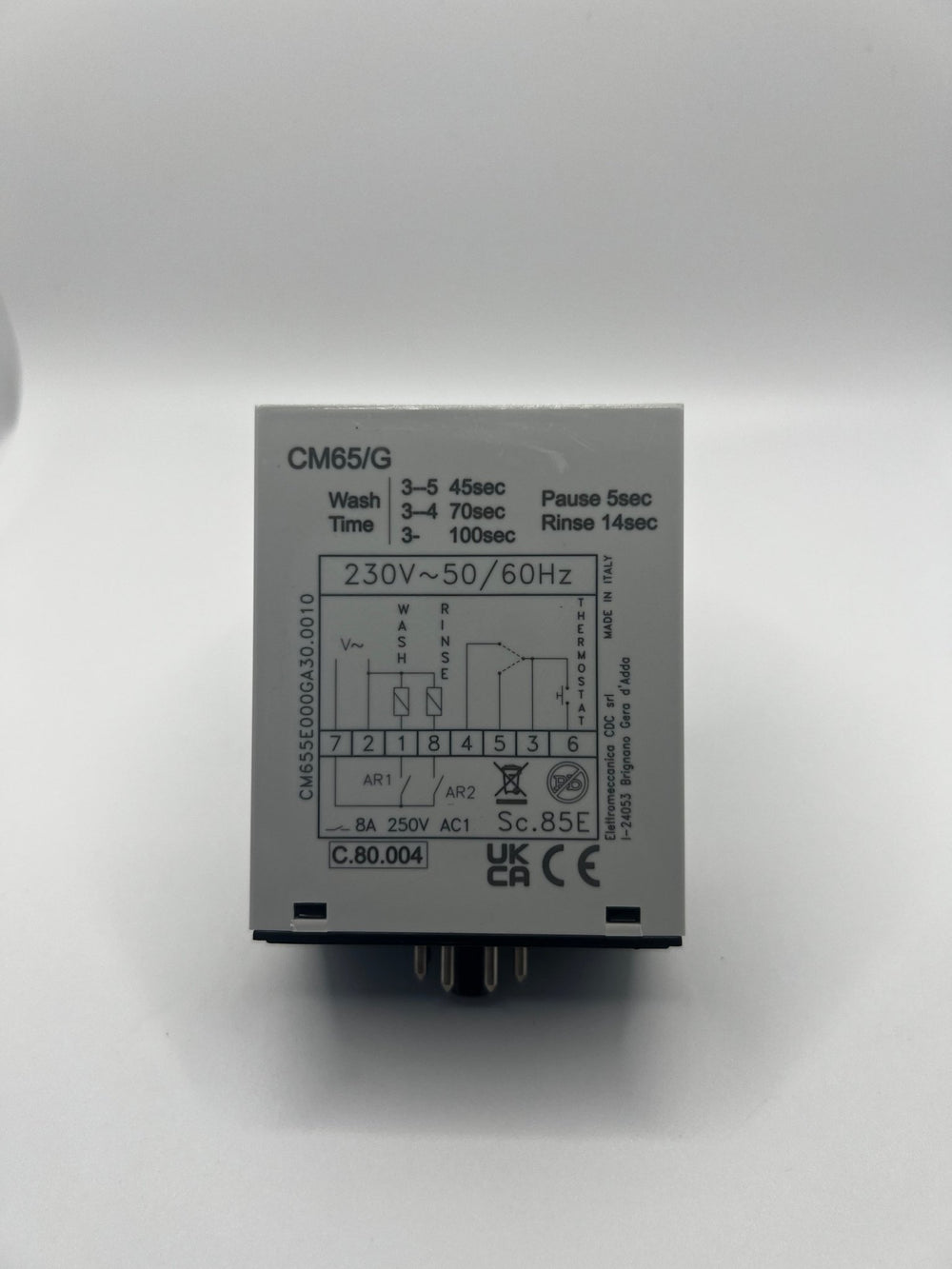 The Eswood Electronic Relay Timer (Part No. SS-251 / CM65/G / CM65//) is a genuine replacement timer designed to control wash and rinse cycles in Eswood commercial dishwashers.